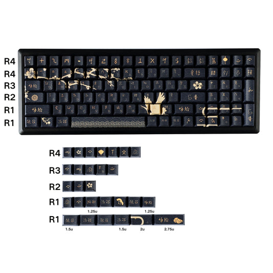YMDK Mingyue Gaosheng Full Set Keycaps PBT Cherry Profile Side Print Translucent Keycap Dye Sub for MX Mechanical Keyboard