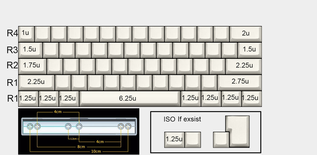 It can be compatible with most standard 61 MX keyboard whose bottom modifiers is 1x6.25u,7x1,25u.Space is 11.7cm and Lshift is 2u shift.Such as GK61 GK61x GK61xs.