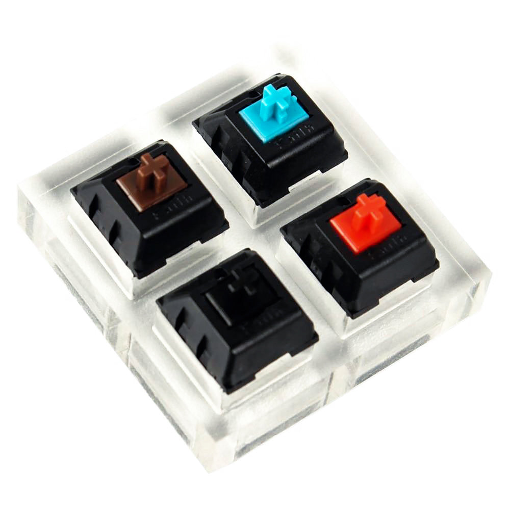Red black white yellow switches are linear switches moving straight up and down without any additional tactile feedback or loud clicking noise.For operating force,Black>Yellow>Red>White.