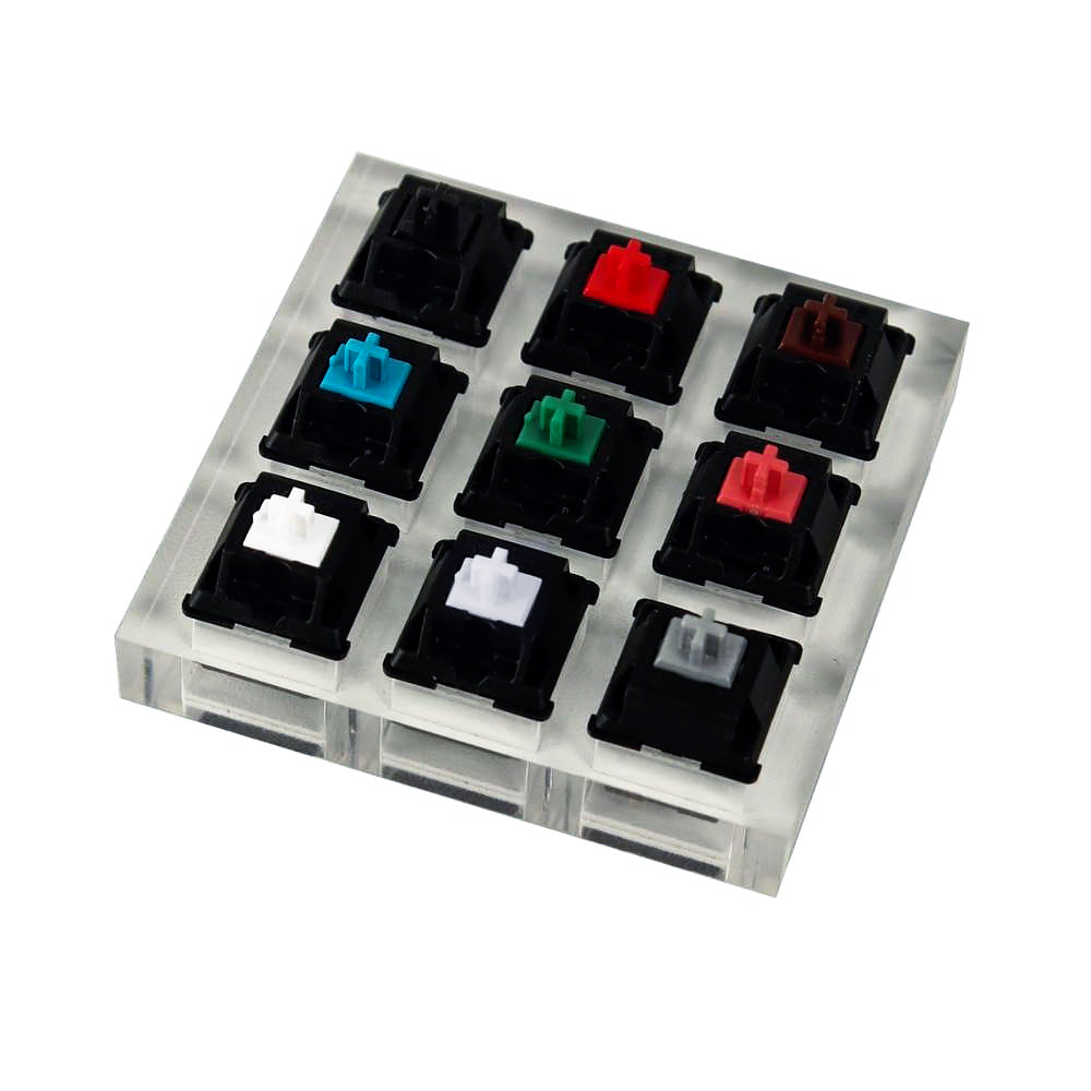 Red black white yellow switches are linear switches moving straight up and down without any additional tactile feedback or loud clicking noise.For operating force,Black>Yellow>Red>White.