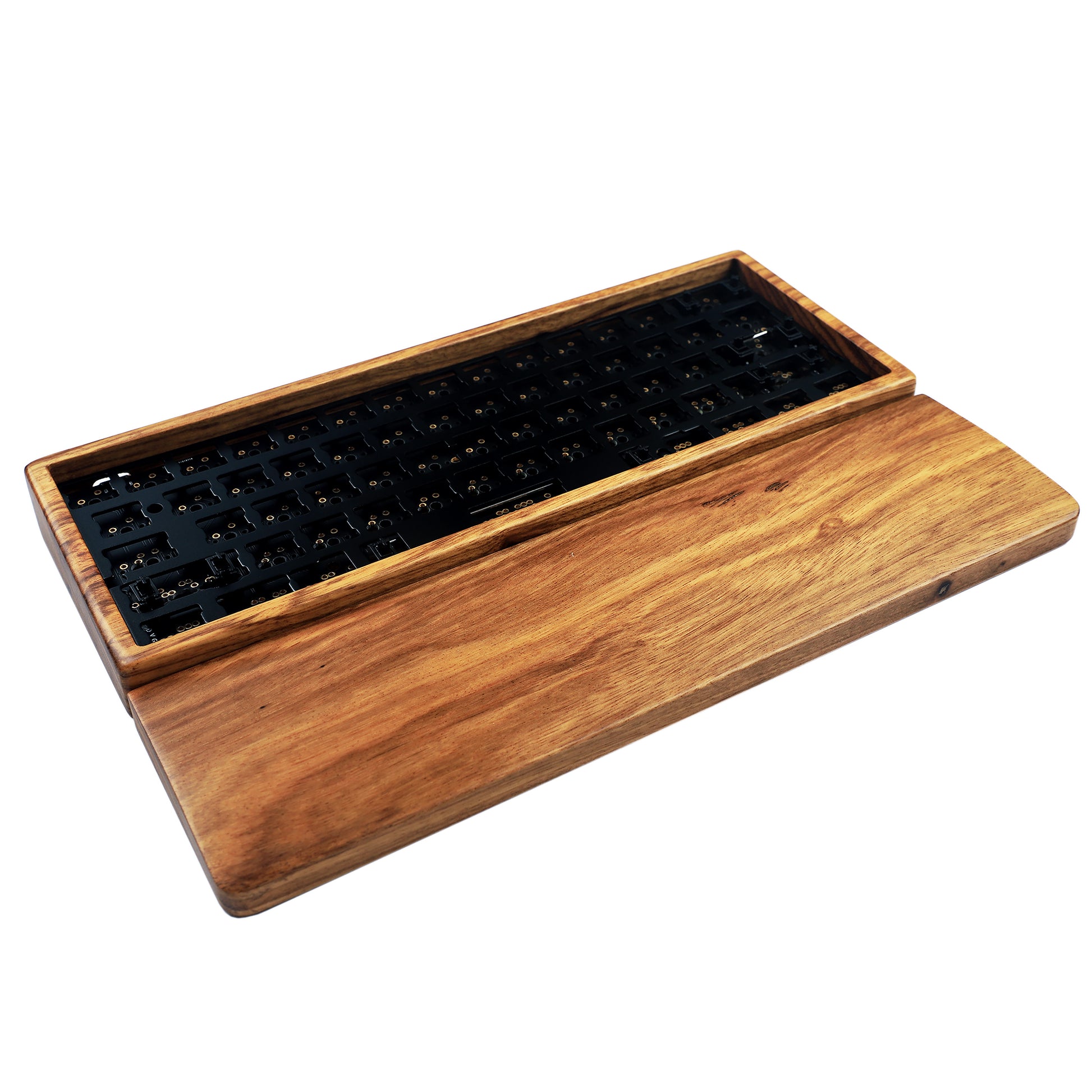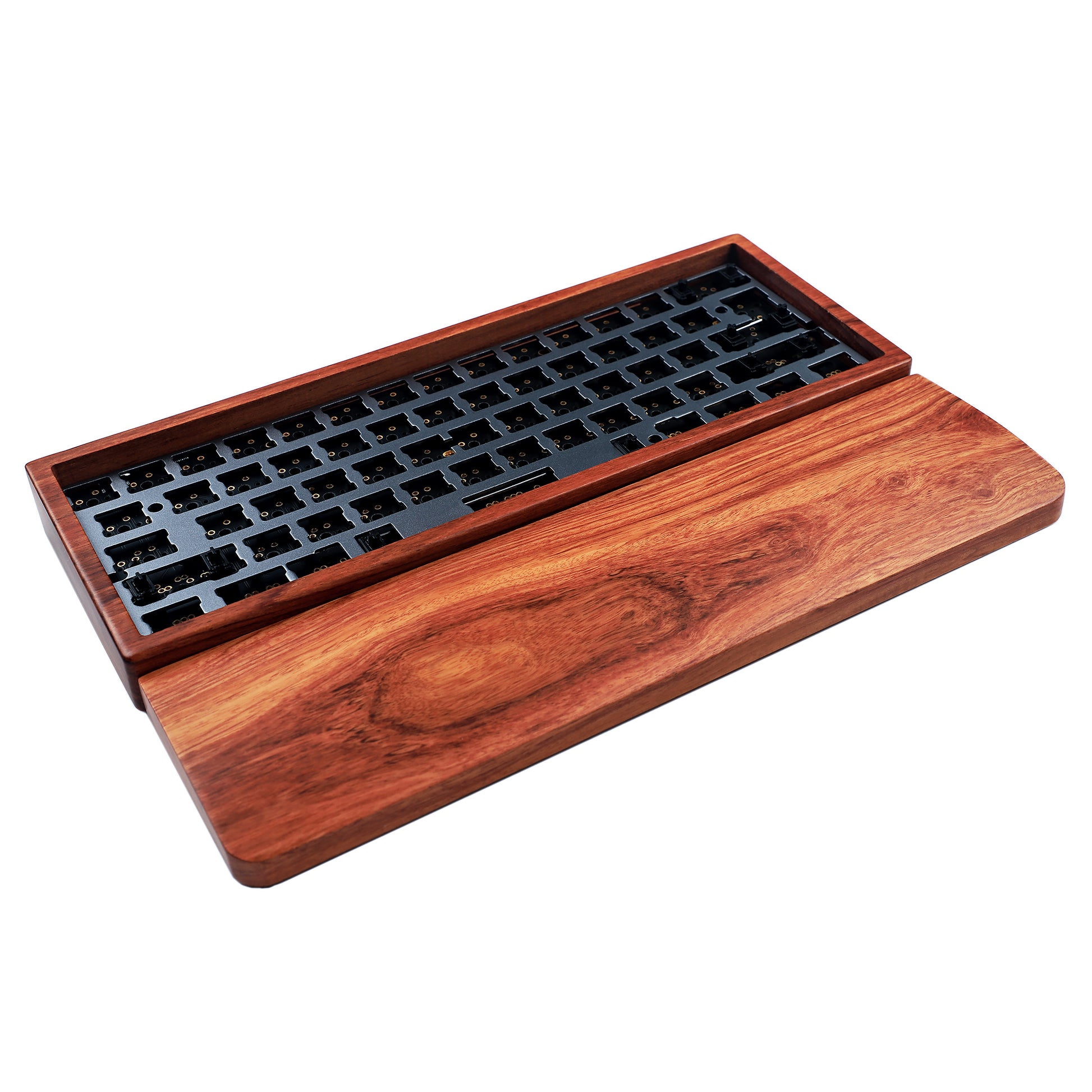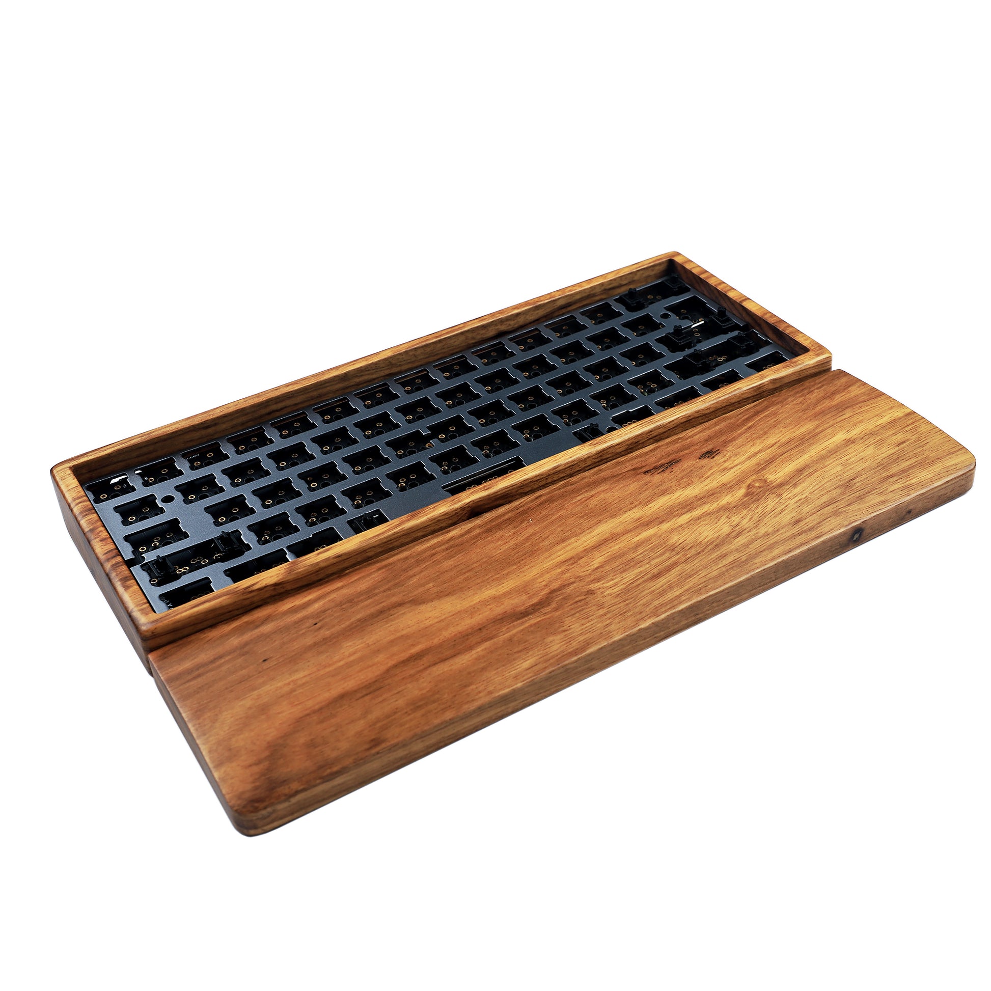 YMD-60% GH60 Wood Case And Wrist Kit: Case + Plate + QMK Black No underglow PCB + PCB Stabilizers + Screws + Feets