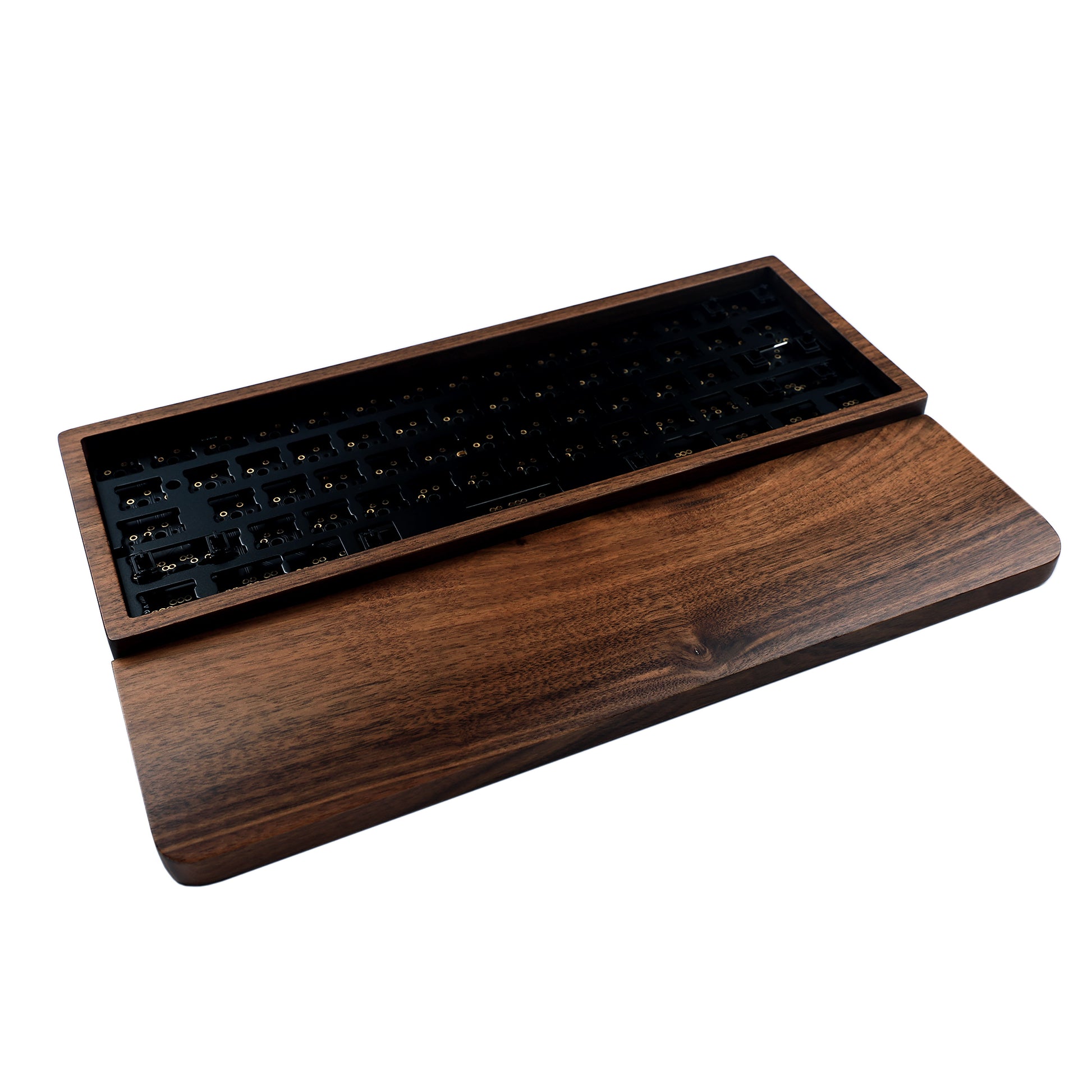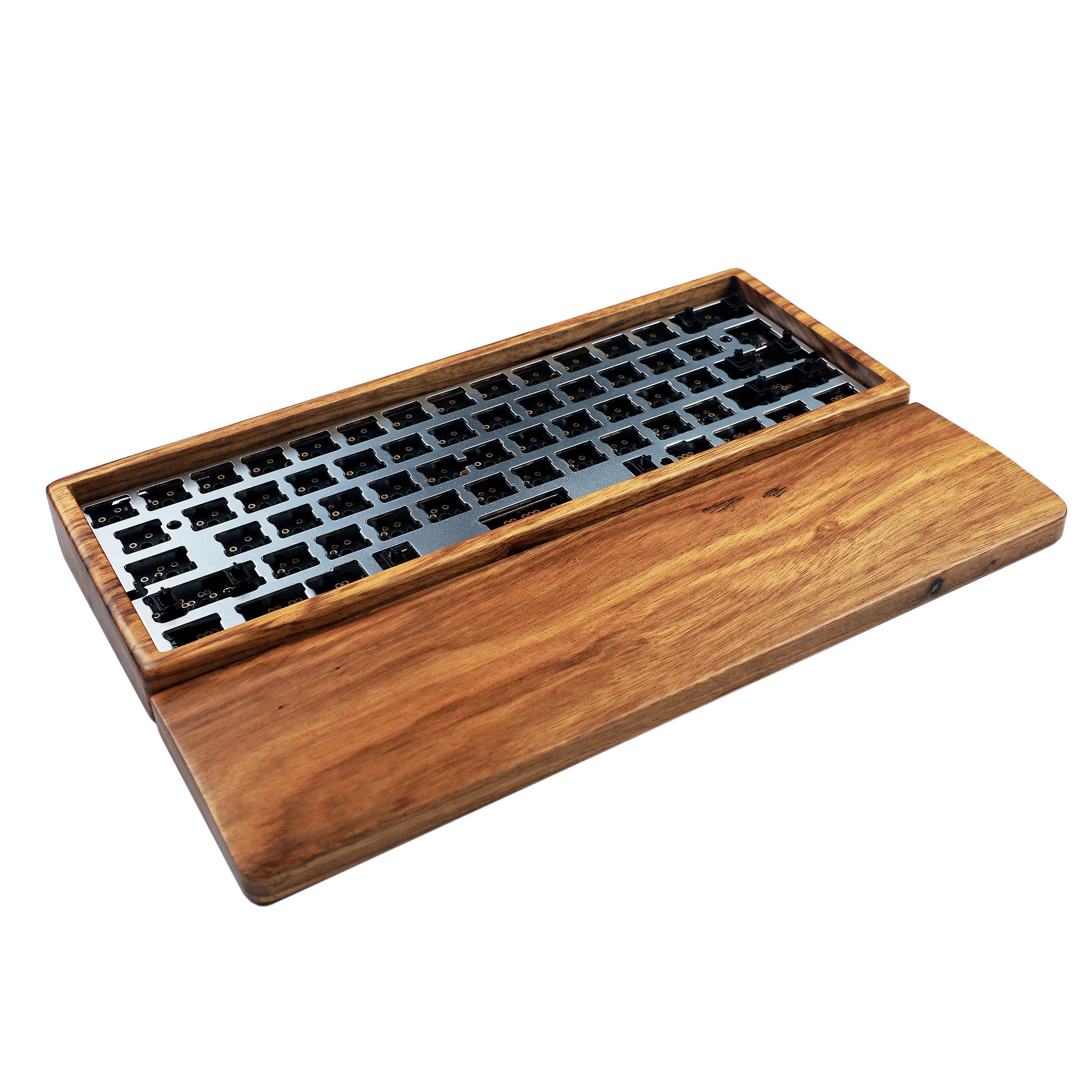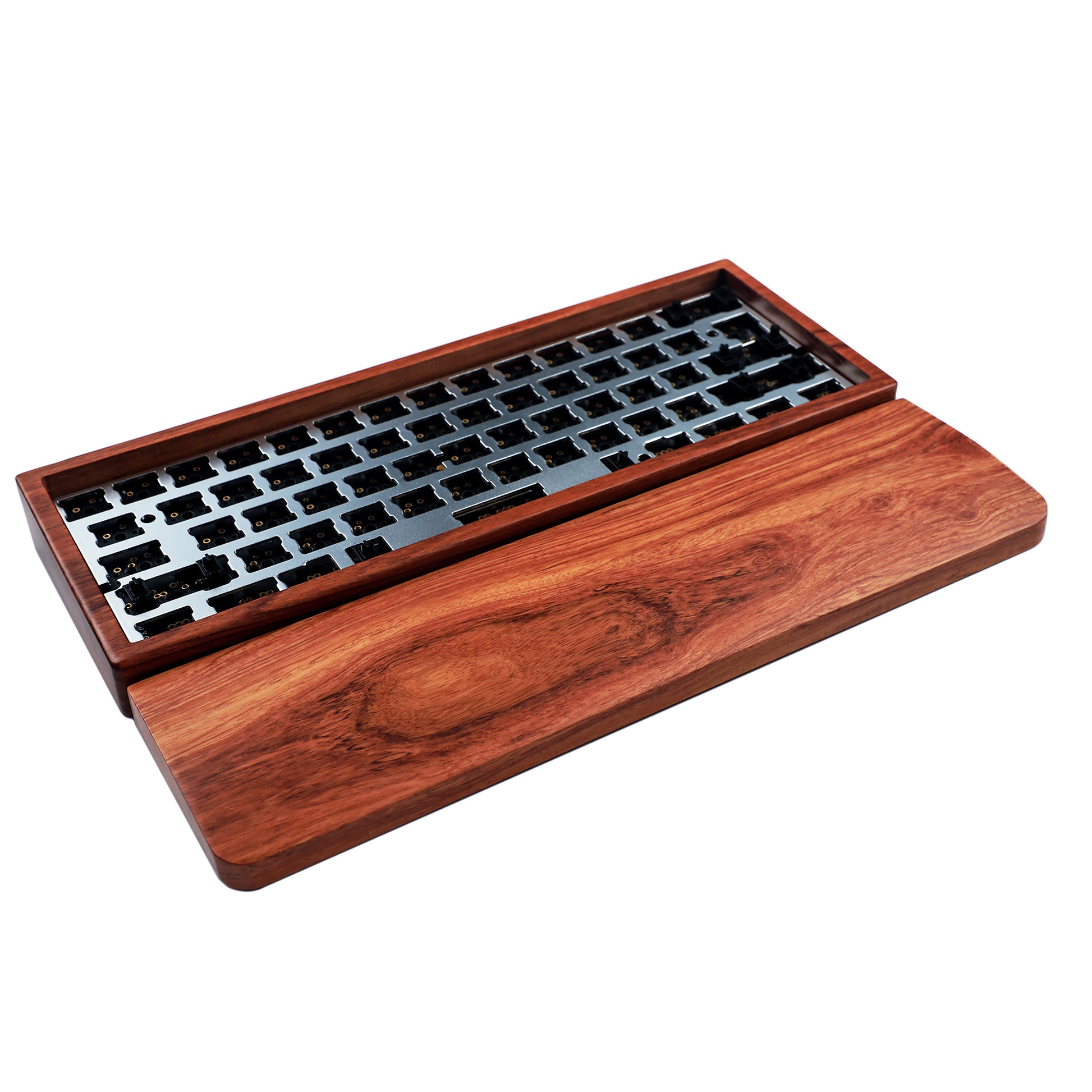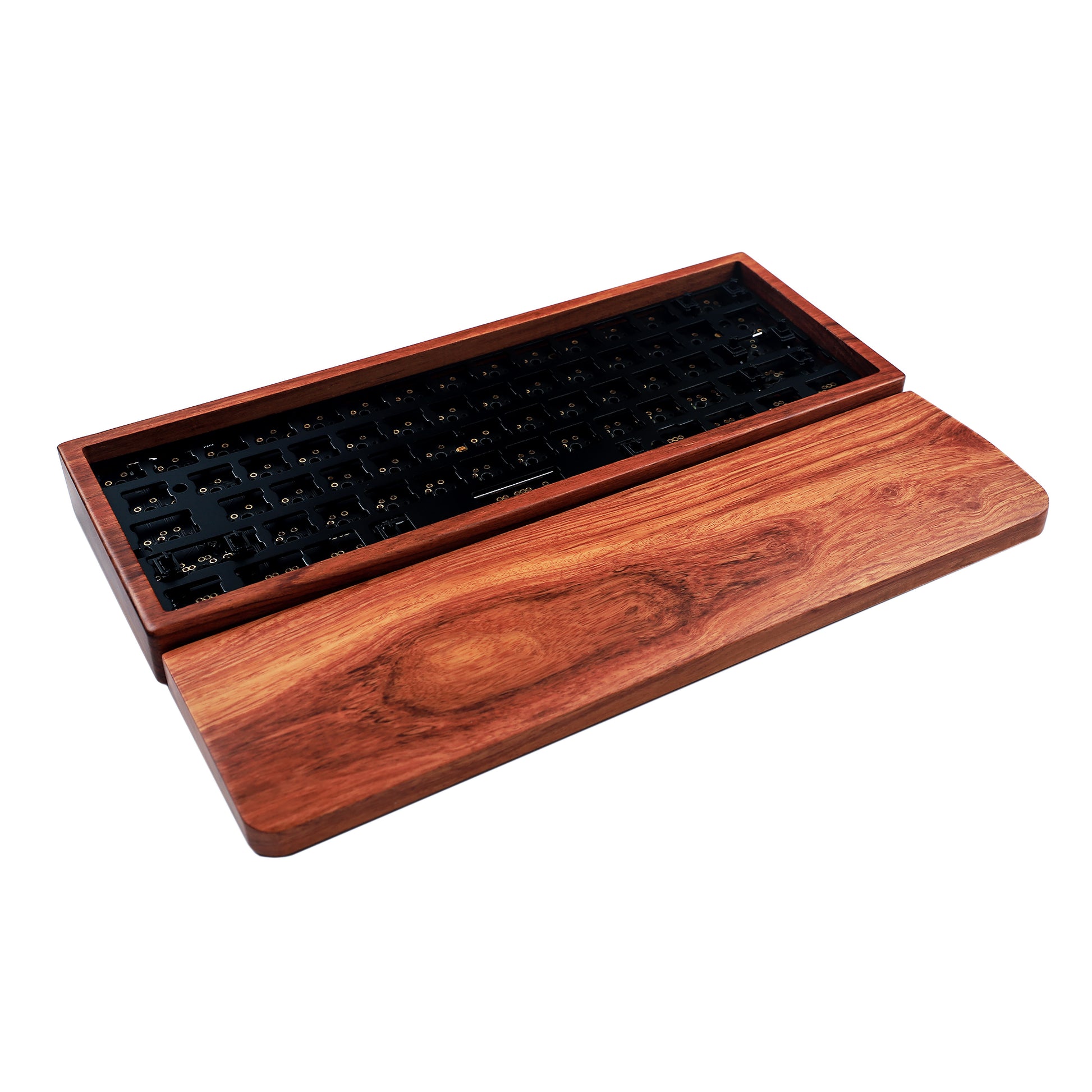 YMD-60% GH60 Wood Case And Wrist Kit: Case + Plate + QMK Black No underglow PCB + PCB Stabilizers + Screws + Feets
