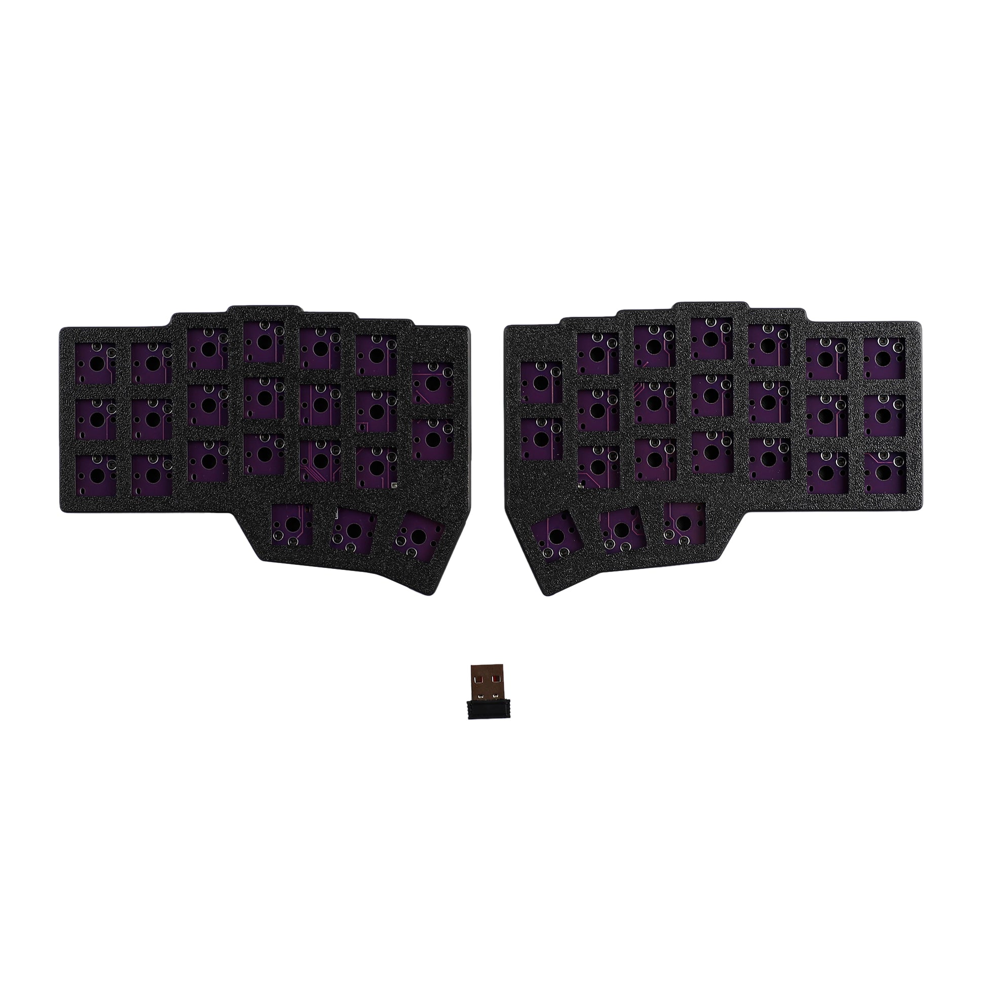 Bottom PLA case × 2 +Top PLA plate × 2 + Low profile Hotswap PCB × 2 + Button Battery × 2 + 2.4 Ghz Connectors