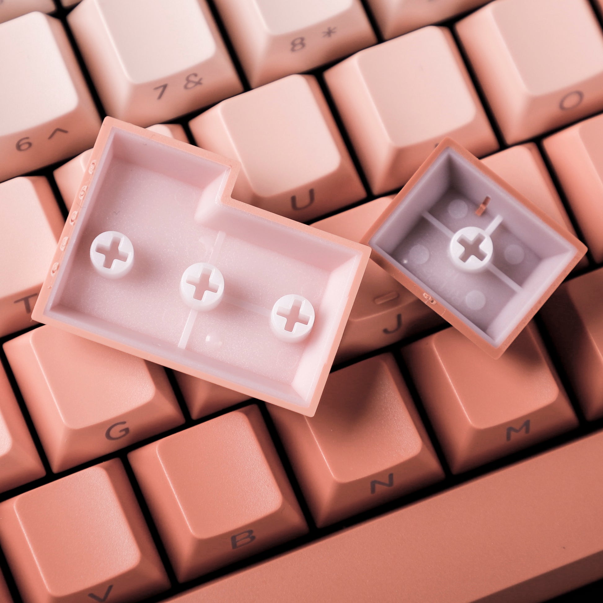 This keycaps are high quality PBT double shot shine through.