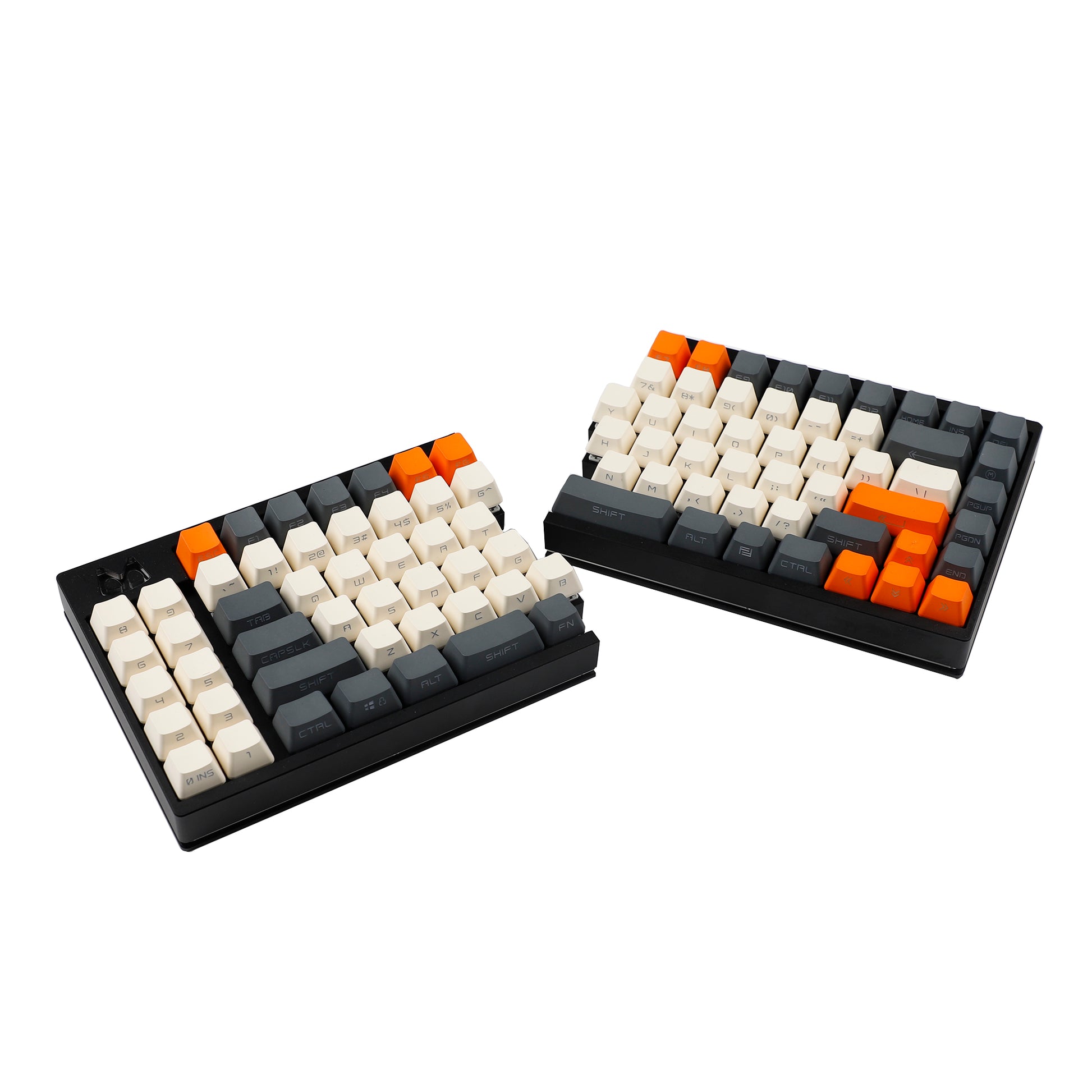 CNC Aluminum Case Integrated Plate + RGB Hotswap PCB + 4 CNC High Aluminum Feet + 4 Lower Rubber Feet + Screws + C to C Spring cable to connect 2 split board + Type A to C Cable + Poron PCB Plate Foam + PCB stabilizers (5x2u)