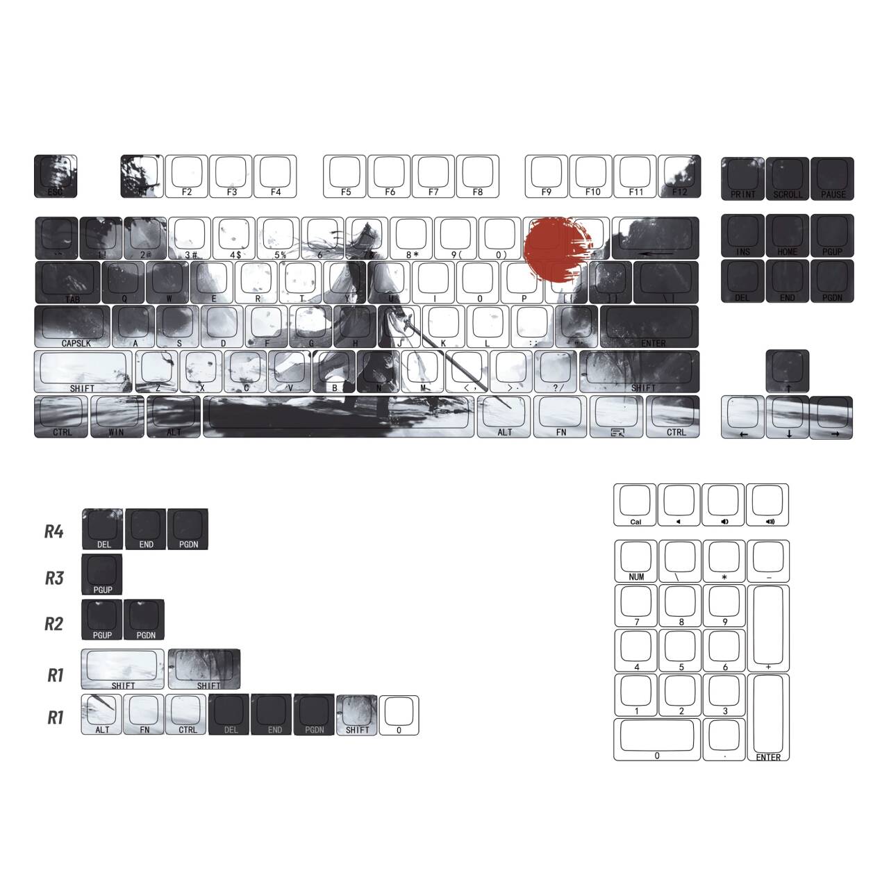 YMDK Sword Immortal Theme Keycaps Full Set 124 Keys Sidelit Cherry Profile Dye Sub Custom Keycap for MX Mechanical Keyboard