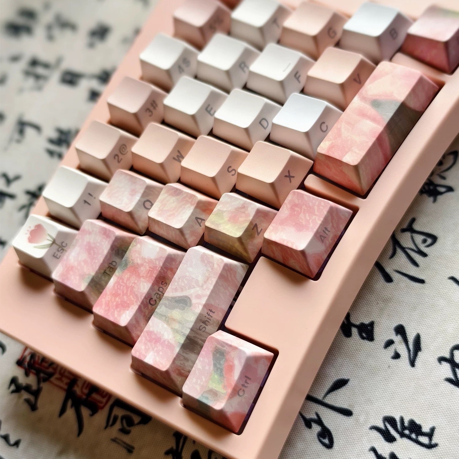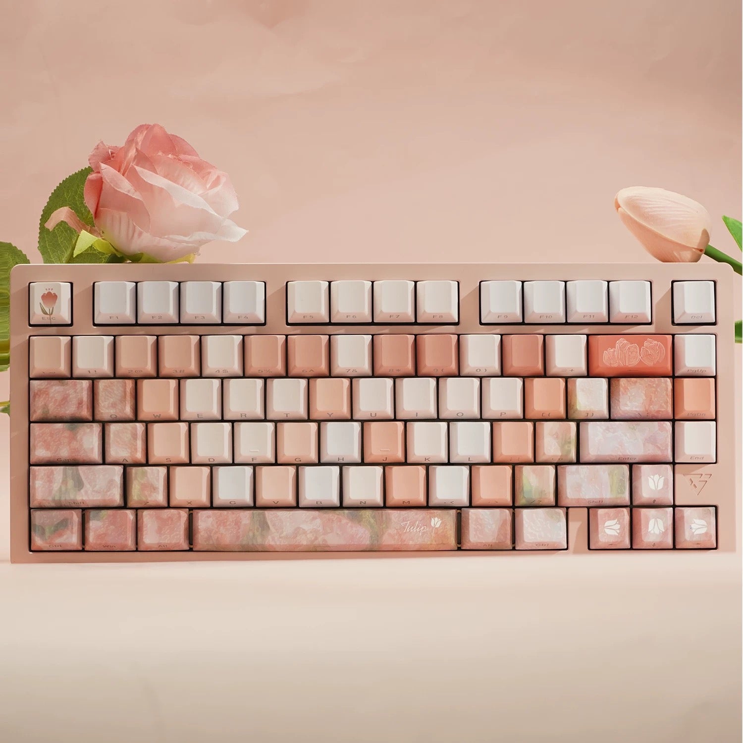 YMDK Tulip Impression Theme Keycaps Full Set 139 Keys Sidelit Cherry Profile PBT Dye Sub Keycap for MX Mechanical Keyboard